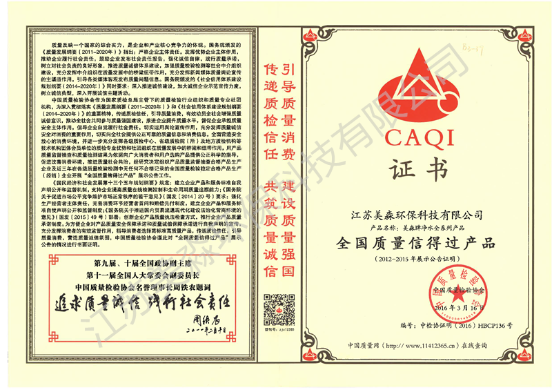 2016年全國質量信得過產品